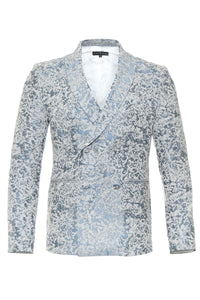 The sky blue double-breasted blazer is a refined tailored piece with a silky lightweight feel lined with 100% white silk. A slim shape and modern design are accompanied by matching buttons. Paired with matching pants.